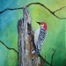 Vooral de boom schilderen was een uitdaging die me veel voldoening gaf. In het echt heb ik nog nooit een specht gezien maar het lijkt me heel spannend om 's avonds het "toktok"geluid in de schemer te horen. Nu in 2025 de kleurstelling veranderd en het bevalt me wel.